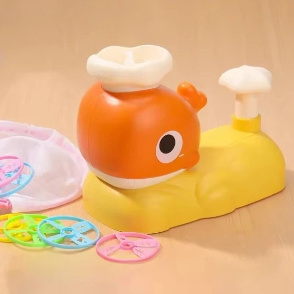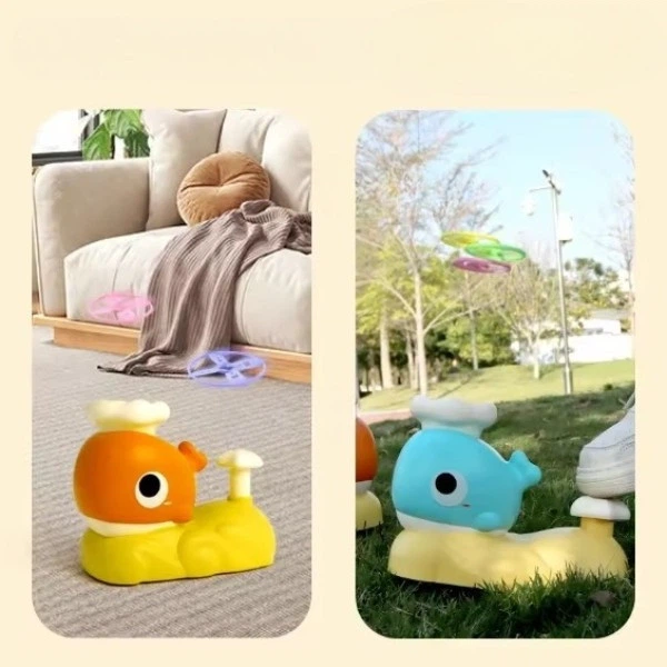 Вулична іграшка для дітей від 5 років, яка поєднує в собі елементи спорту, спритності та командної гри. Натисніть на педаль — і кит «випустить» одну із шести літальних тарілок, яку потрібно зловити ачком. Це чудовий спосіб заохочувати активність, розвивати координацію та весело проводити час на свіжому повітрі.